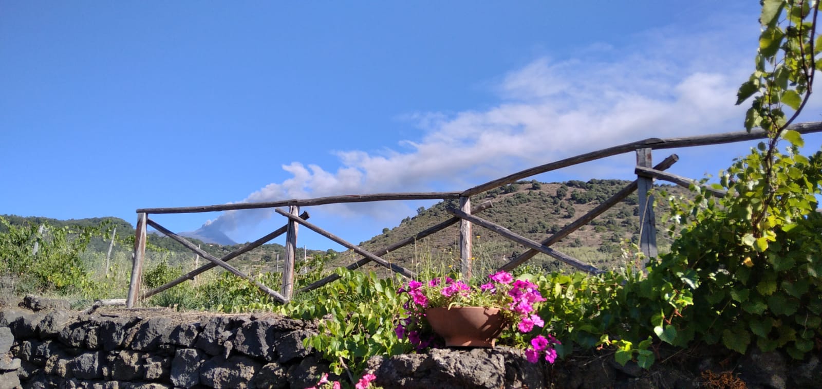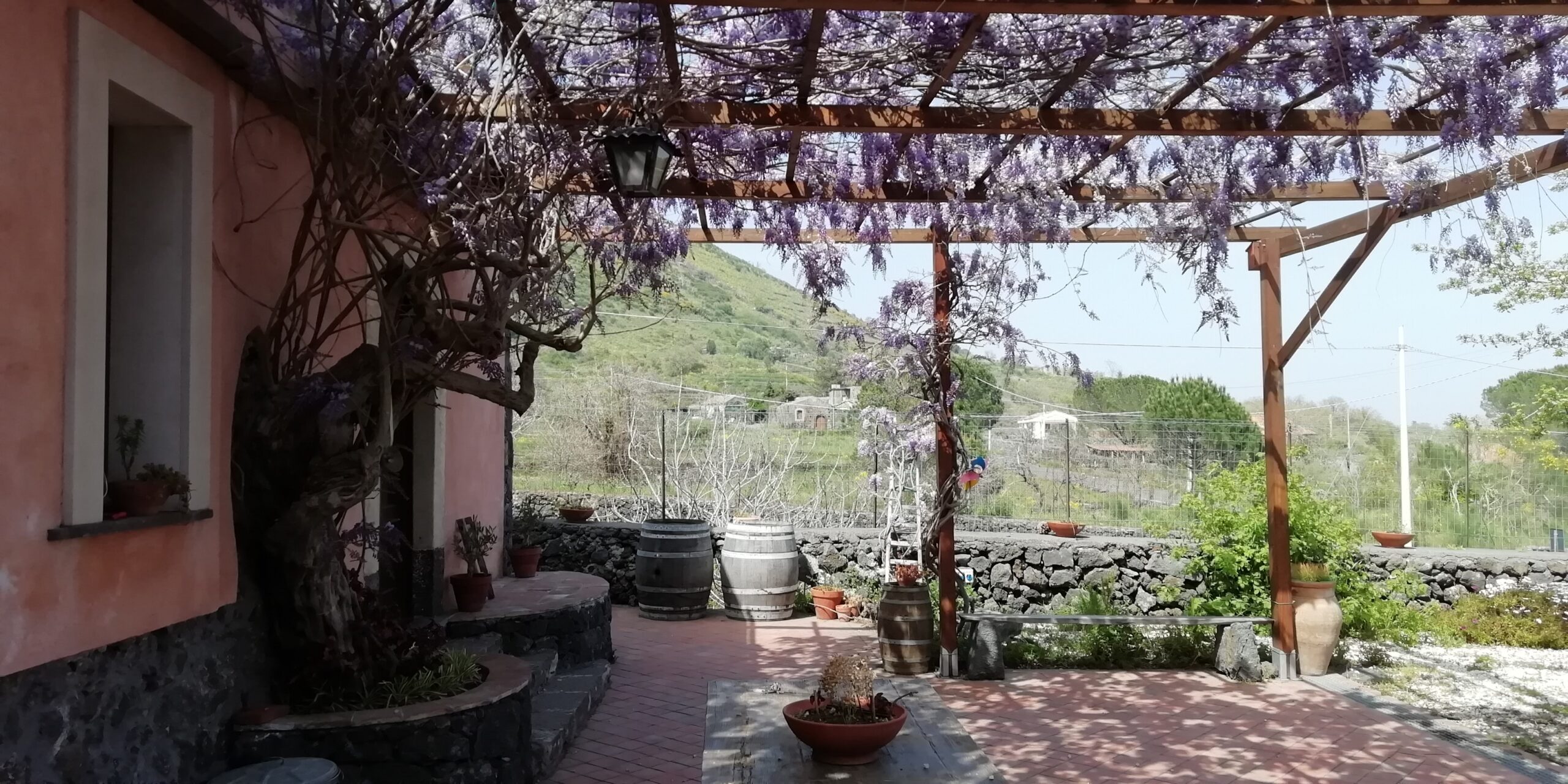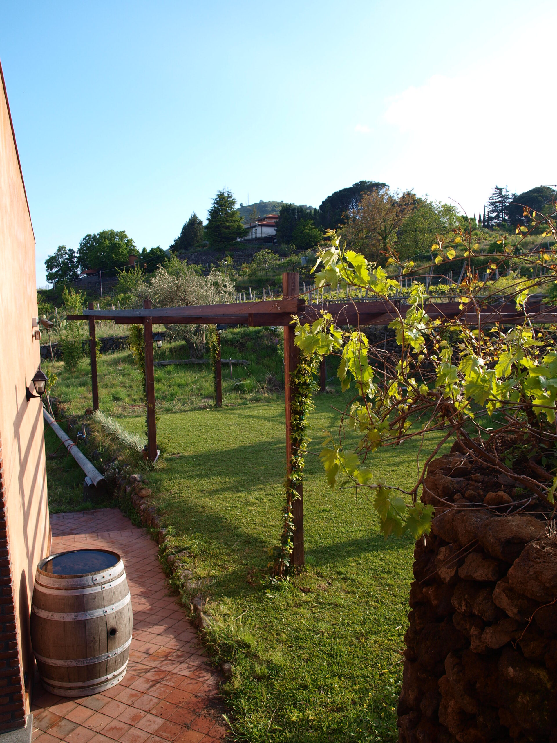 Il terreno di Trecastagni custodisce un tipico casolare di fine ‘800, ristrutturato nel 2015, che conserva al suo interno un piccolo palmento che fino agli anni ’90 veniva utilizzato regolarmente per la produzione del vino. Tra le sue spesse mura di pietra lavica è possibile intrattenersi per degustare i nostri vini e capire il suo antico funzionamento.