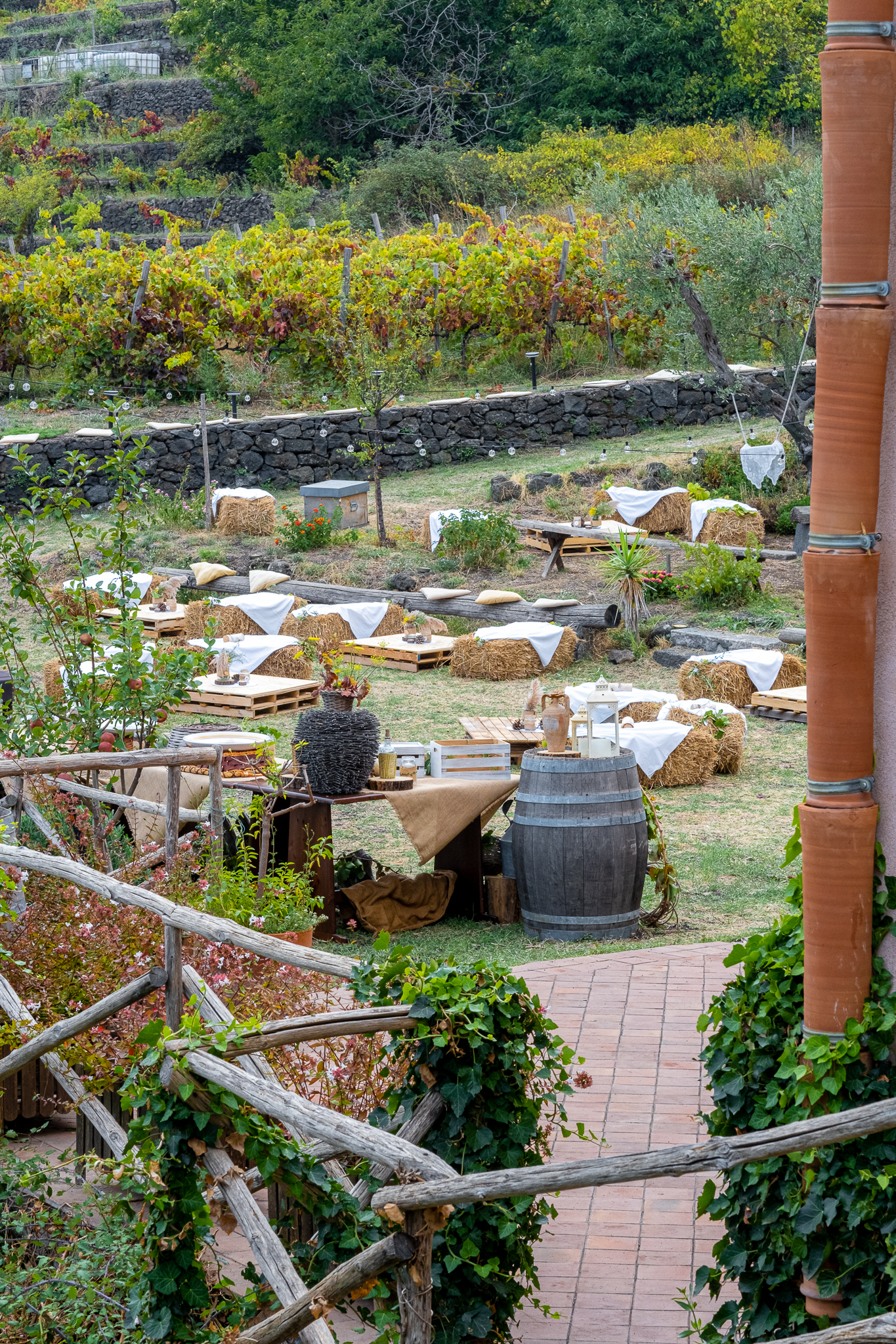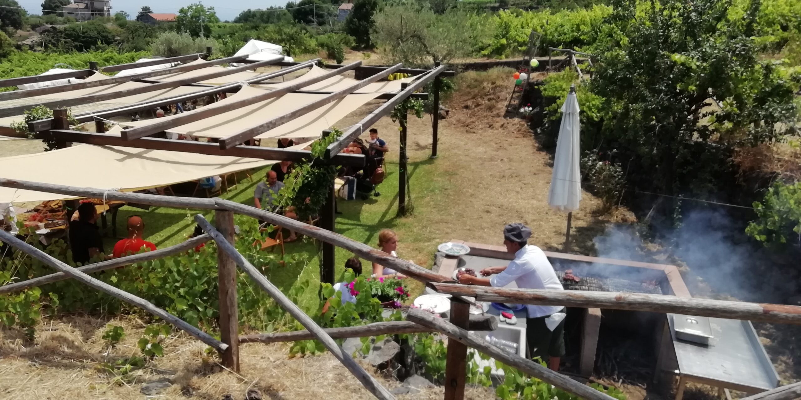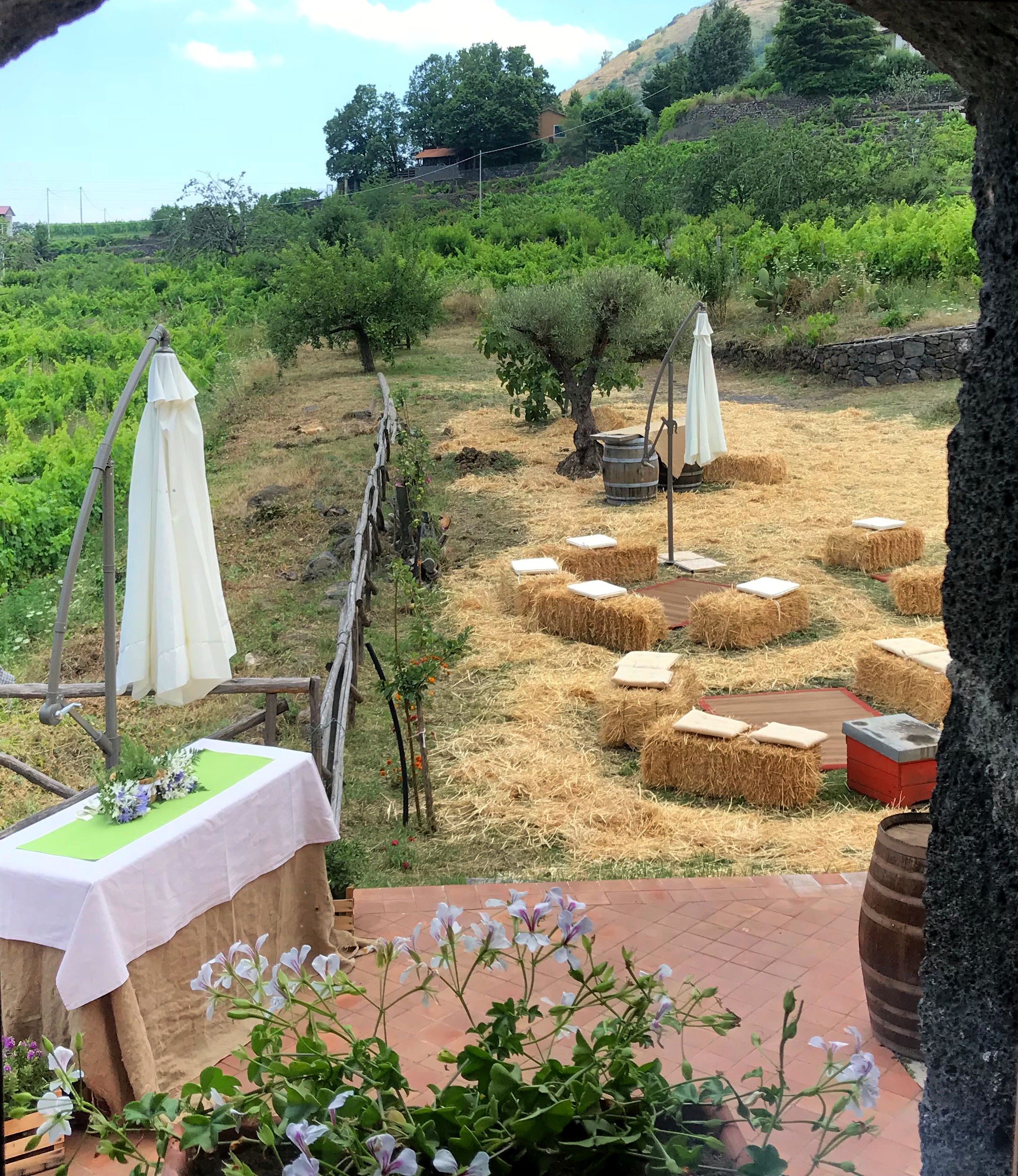 Il terreno di Trecastagni custodisce un tipico casolare di fine ‘800, ristrutturato nel 2015, che conserva al suo interno un piccolo palmento che fino agli anni ’90 veniva utilizzato regolarmente per la produzione del vino. Tra le sue spesse mura di pietra lavica è possibile intrattenersi per degustare i nostri vini e capire il suo antico funzionamento.